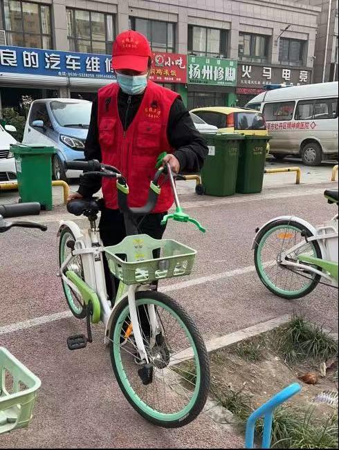 志愿者清理垃圾、將自行車進(jìn)行歸位